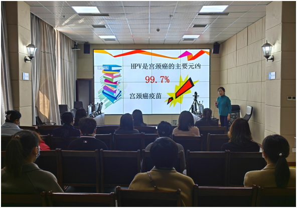 在讲座过程中,计磊主任的课程语言精炼、内容专业,特别是详细解说了HPV的种类和疫苗的接种范围,大家受益匪浅。参加讲座的工作人员全程佩戴口罩、间隔就坐,严格遵守疫情防控要求。