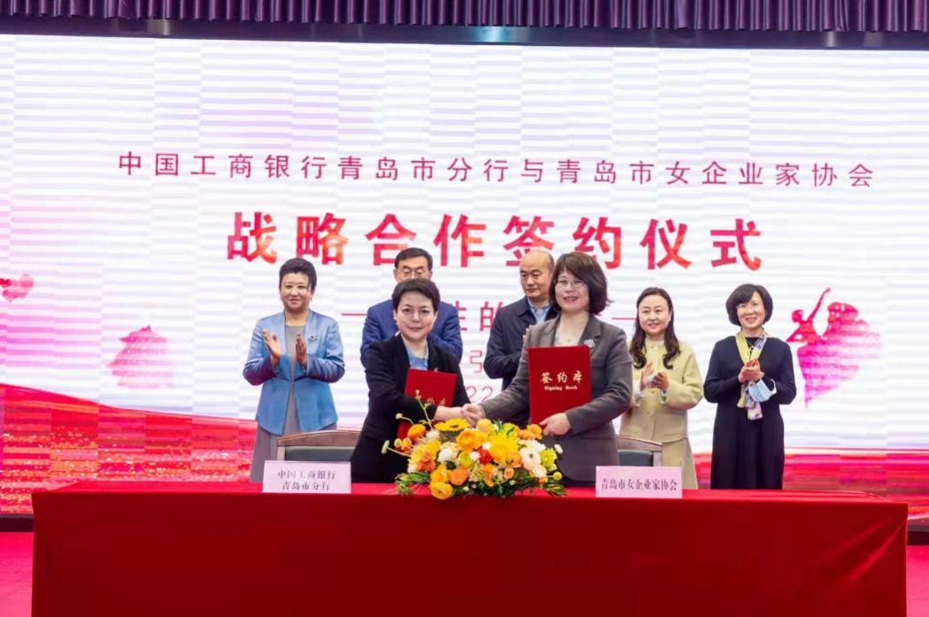 为共同庆祝第112个“三八”国际妇女节,对积极创业创新求发展的女企业家给予金融支持,2022年3月5日,工商银行青岛市分行与青岛市女企业家协会举办“共话合作 共赢发展”联谊活动,并签署战略合作协议。青岛市人大副主任张大勇、青岛市政协副主席卞建平、青岛市妇联主席宋立春、青岛市妇联主席副主席吕丽艳、青岛市妇联发展部部长朱梅、工商银行青岛市分行副行长赵晓滨、青岛市女企业家协会会长张旭明出席签约仪式并见证,工商银行青岛市分行副行长李霞与青岛市女企业家协会副会长姜春凤代表双方签署协议。