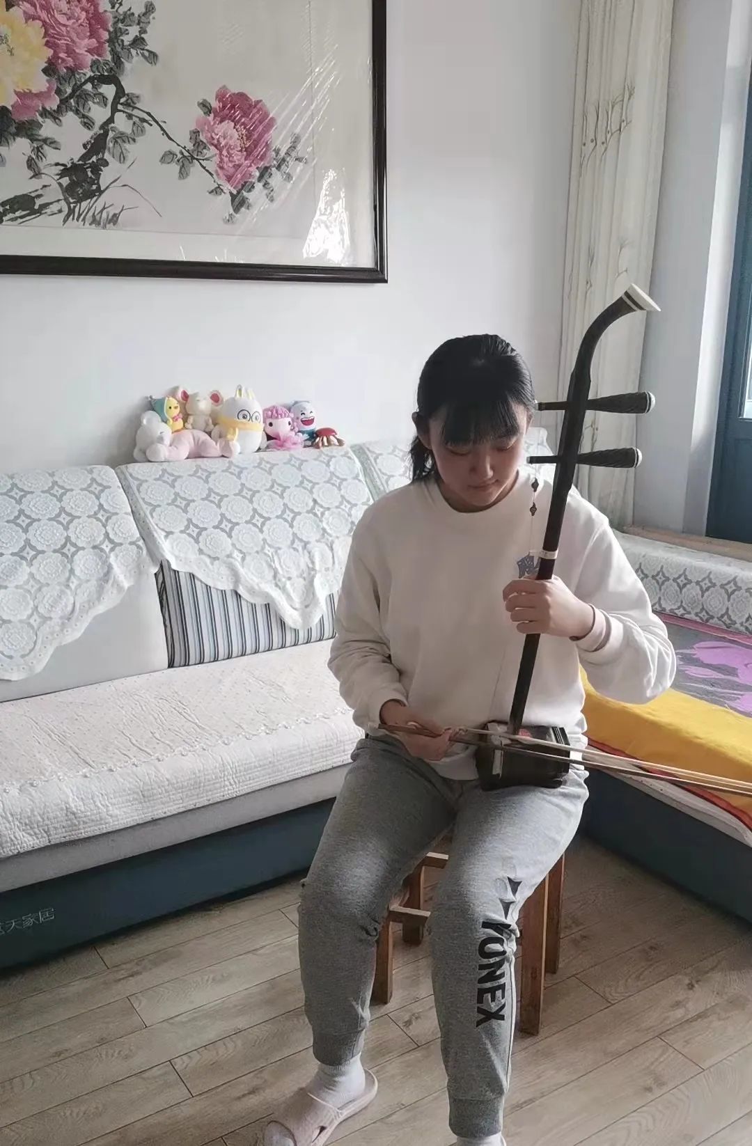突如其来的疫情,让我们不得不回到家中上课,但在紧张的高三课程中,适当的音乐熏陶能带给我极大的放松,是身心疲惫时寻找的艺术港湾。就在这时,二胡已然和我的学习相辅相成,让我在紧张的课业中也得到了艺术素养的提升。