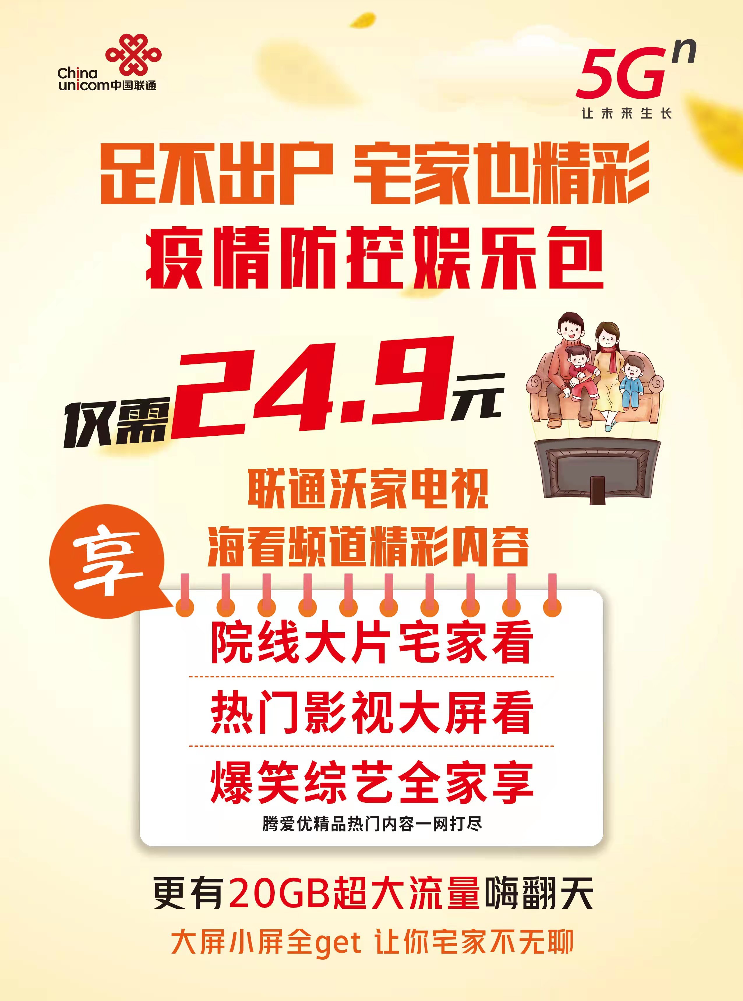 联通疫情防控娱乐包,让你宅家乐不停,流量续航嗨翻天