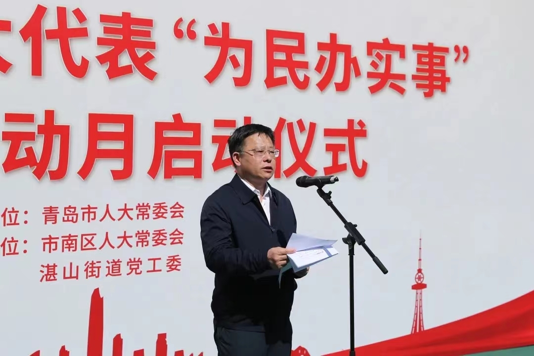 启动仪式上,市人大常委会号召全市各级人大代表充分发挥与人民群众工作在一起、生活在一起的天然优势,围绕城市更新与城市建设、人居环境整治等热点难点问题,沉到第一线、深入最基层,集中倾听民声民意,既要当好桥梁纽带,又要亲力亲为,扑下身子帮助群众解决“急难愁盼”问题。市南区通报了该区人大代表“为民办实事”集中活动月推进计划,市人大代表、上海段和段(青岛)律师事务所主任周海燕,市南区人大代表、青岛湛山疗养院党委书记、院长毛勇代表全市人大代表做了表态发言。