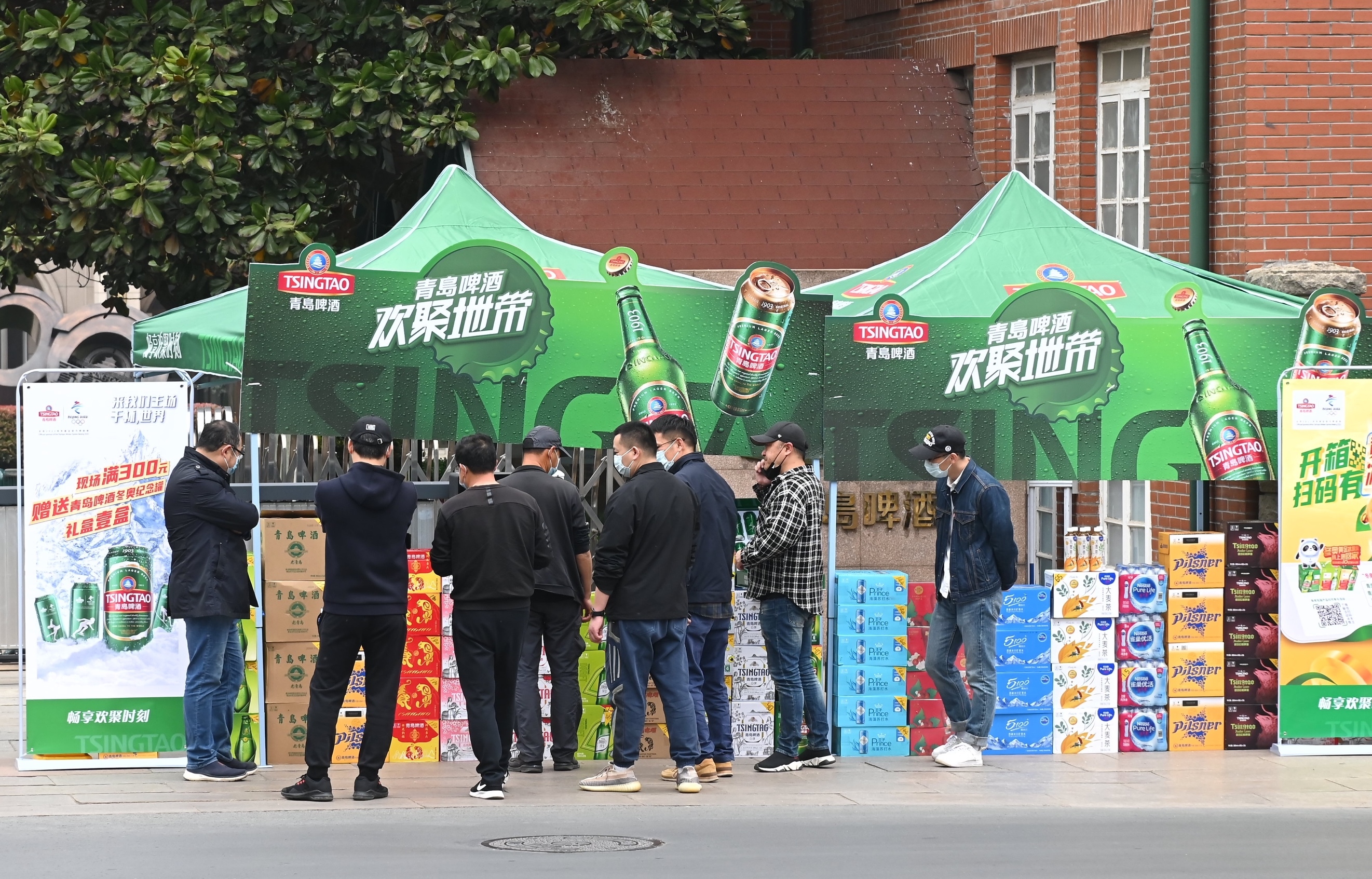 据工作人员介绍,现场“满300元赠送青岛啤酒冬奥纪念罐礼盒”,纪念灌瓶身印有冬奥会比赛项目,是极具纪念收藏价值的“礼物”。