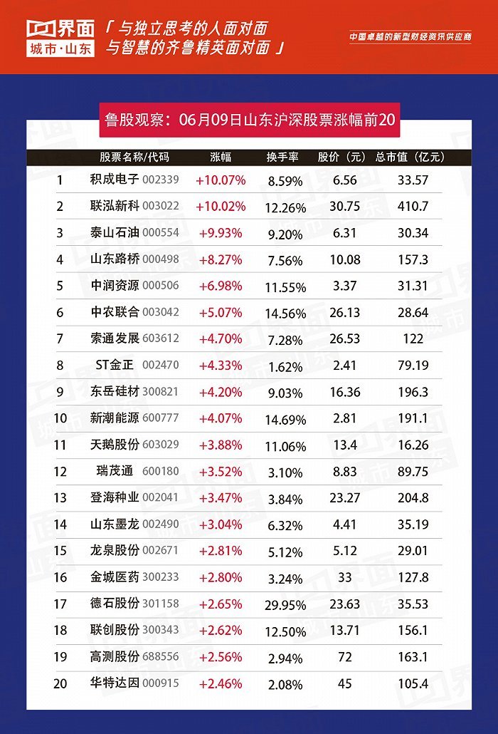 山东上市企业今日突出表现如下: