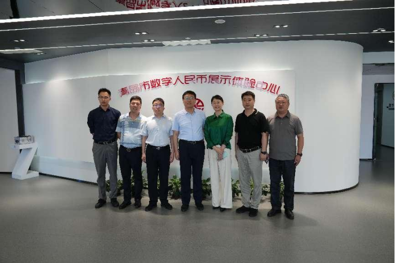 2022年6月18日下午,德州市临邑县委张旗书记一行到青岛中晟汇银投资管理有限公司、数金公共服务(青岛)有限公司进行商务合作考察及座谈交流。青岛中晟汇银总经理王平、公司创始合伙人冯亦晨陪同张旗书记一行参观考察数金公共服务(青岛)有限公司,并参观青岛市数字人民币体验中心。数金公服副总经理孙宝娣向张旗书记一行详细介绍了数字人民币青岛试点推行及应用推广情况。