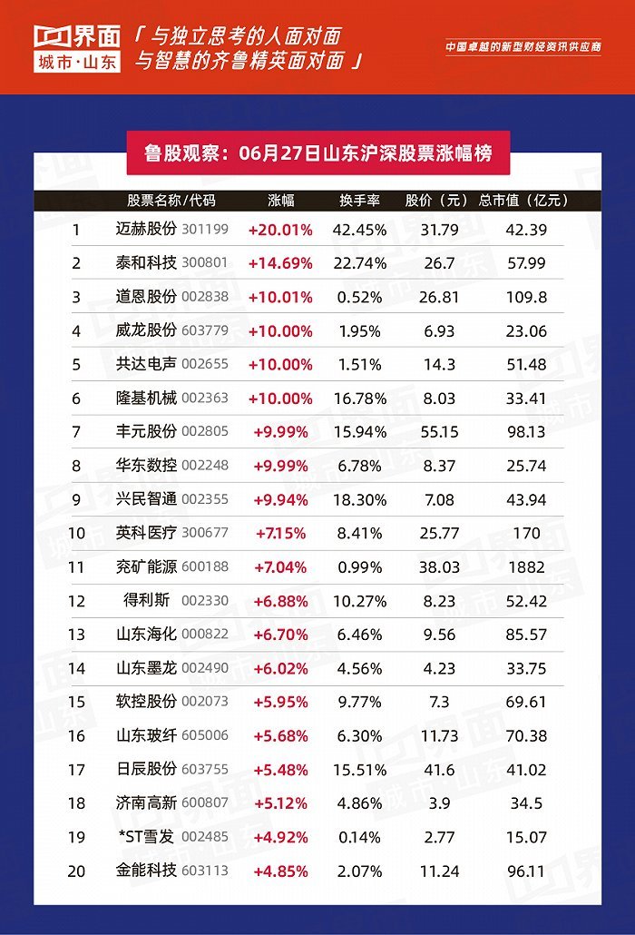 山东上市企业今日突出表现如下: