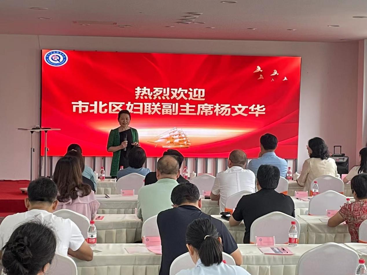 保障女性权益,绽放女性力量,青岛市市北区企业服务协会妇女联合会于7月12日正式成立。会上,市北区妇联副主席杨文华对协会妇联的成立和协会周年庆典发表了热情洋溢的贺词。她强调,女职工要立足本职工作,创先争优,热心公益,积极争当“巾帼岗位标兵”,不断开创妇女工作和妇女事业新局面,在社会主义现代化建设中立标杆,创辉煌。