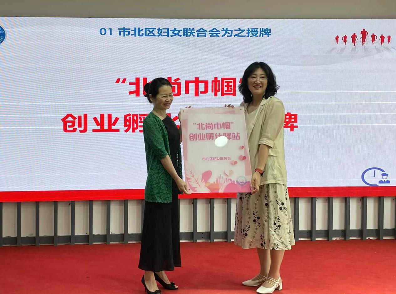 市北区妇联杨文华副主席授牌、为协会举办了“北尚巾帼”创业孵化驿站和协会副会长单位补录授牌仪式。