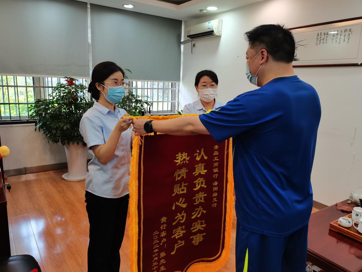 近日,工商银行青岛洛阳路支行收到客户张先生送来的一面印有“认真负责办实事 热情贴心为客户”的锦旗和表扬信,感谢该行贴心服务为其父亲解决退休金发放账户难题。
