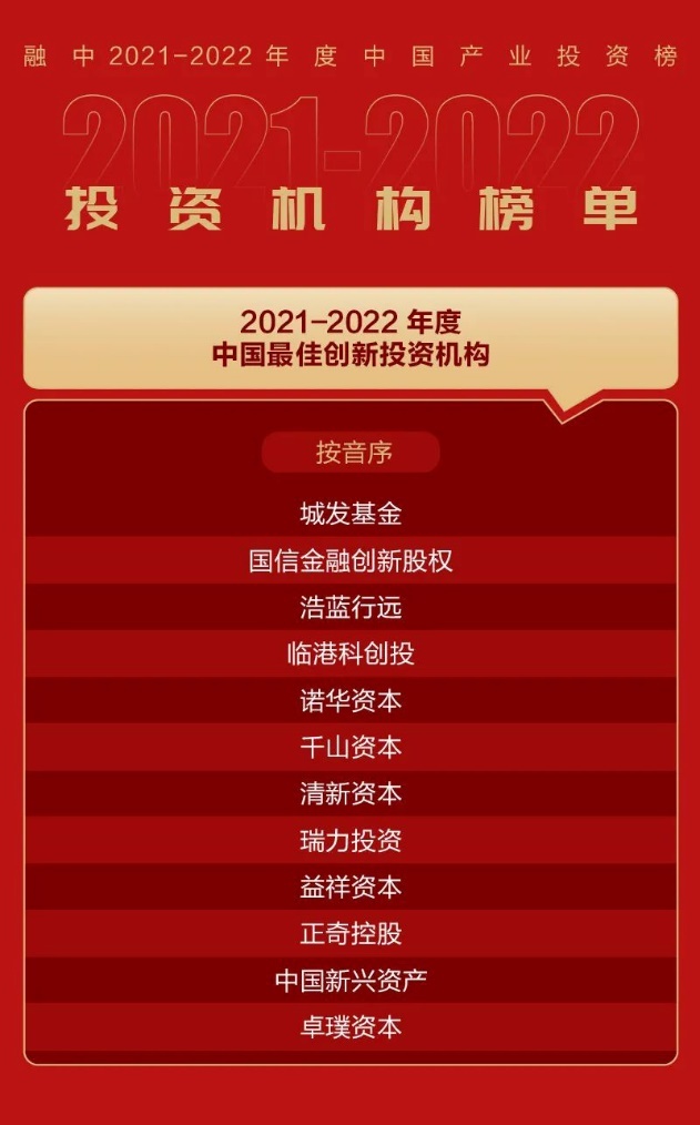 8月18日,2022年中国产业投资机构榜单在融中2022(第八届)中国产业投资峰会上正式揭晓。青岛国信创新股权投资管理有限公司(以下简称“国信创新股权投资公司”)凭借在股权投资领域的专业投资能力和优秀投资业绩,荣获“2021-2022年度中国最佳创新投资机构”奖项。本次荣誉的获得,是对国信创新股权投资公司在创新投资领域专业能力及品牌影响力的充分认可和肯定。