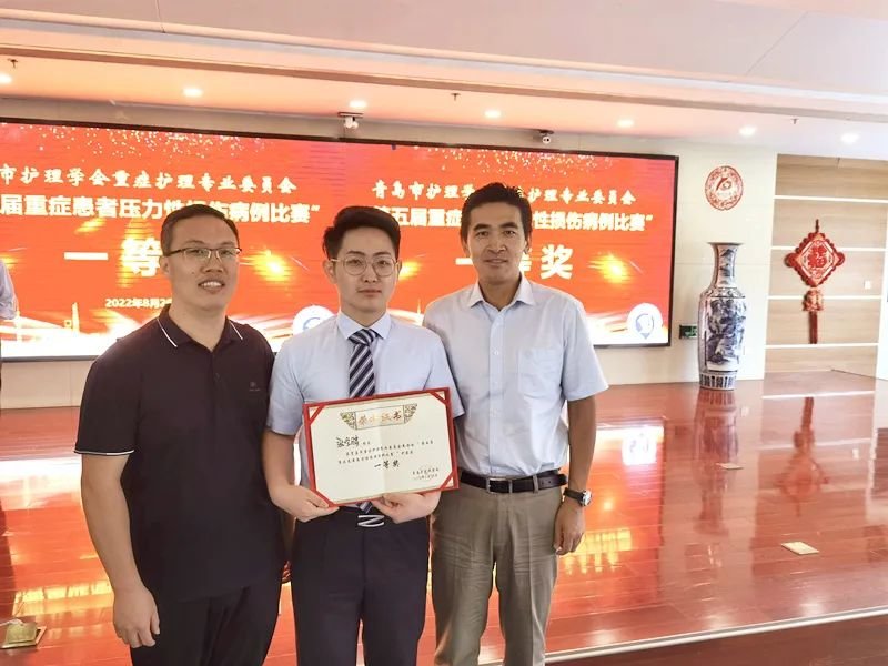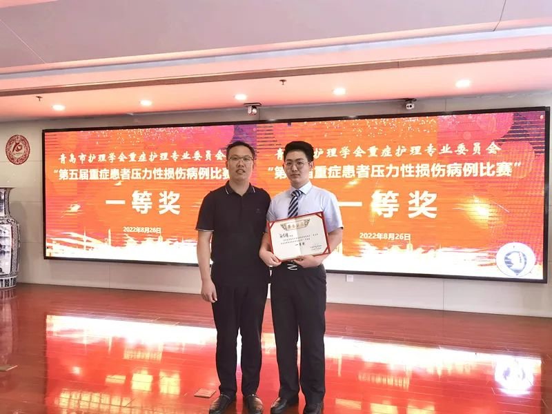 不负秋光天使忙,共“疮”美好获大奖。此次案例比赛从案例汇报、伤口评估、伤口的预防与治疗及效果评价等方面展开,青岛西海岸新区中心医院重症医学科参赛作品《云上相约,共“疮”美好》由重症医学科小将张学骕参赛,案例资料典型,测量、评估及处理方法准确规范,疗效显著,图片真实全面,选手精神饱满,英姿飒爽的表现收到在场专家的一致好评,最后在14名选手激烈的角逐下,不负众望,再创佳绩,荣获本次大赛第一名。