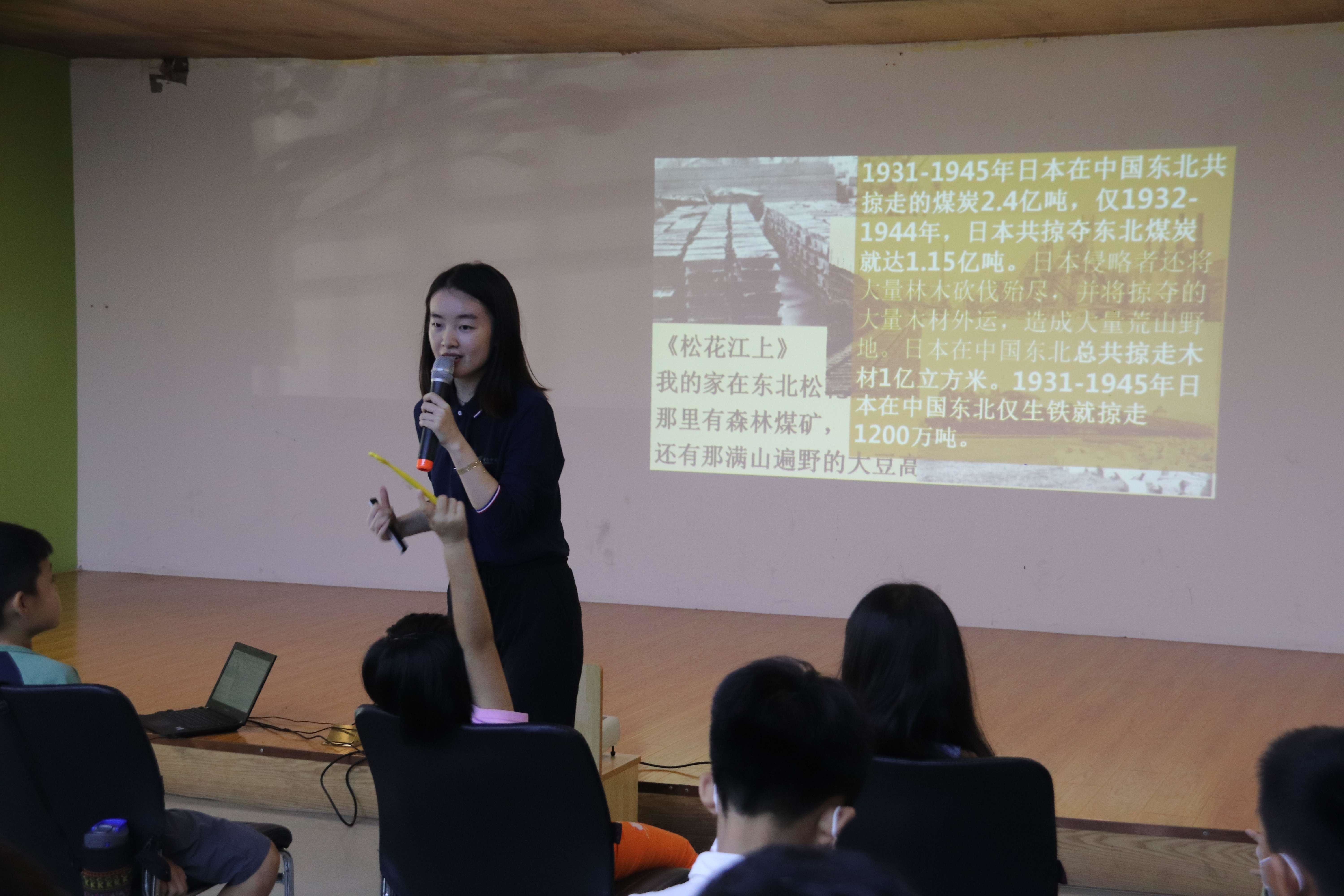 本期活动由馆员房惠老师带领小朋友一起回顾九一八事变的相关历史。一首《松花江上》让小朋友们对东北地区美丽的景色和富饶的资源展开了热烈的讨论,从讨论中大家认识到当时日本侵略者觊觎东北地区的重要原因。随后,老师为小朋友们讲解了日本的侵略政策和国民政府的“不抵抗”政策,以及“九一八”事变后日本在东北的掠夺行为和东北人民的苦难生活,警示大家铭记历史、勿忘国耻。