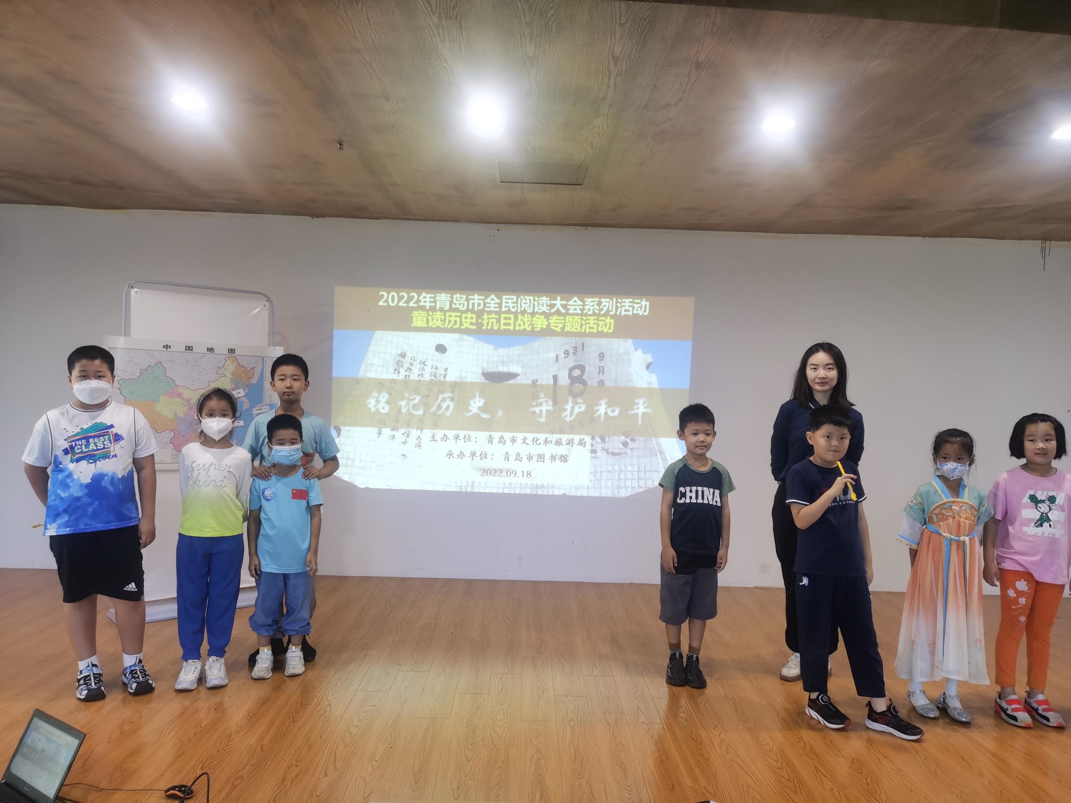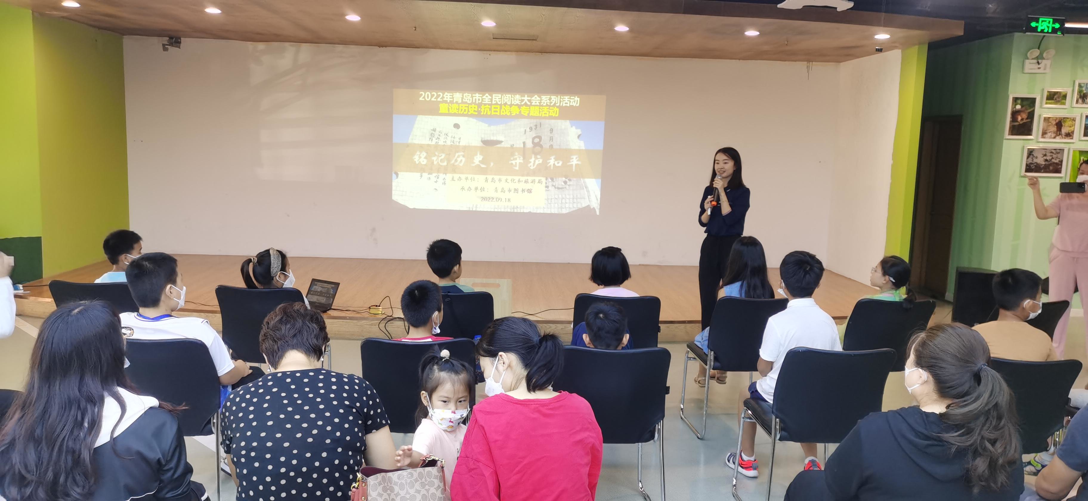 9月18日上午,2022年青岛市全民阅读大会系列活动——小贝壳“童读历史·抗日战争专题活动:铭记历史,守护和平”在青岛市图书馆自然多维阅读空间举办。