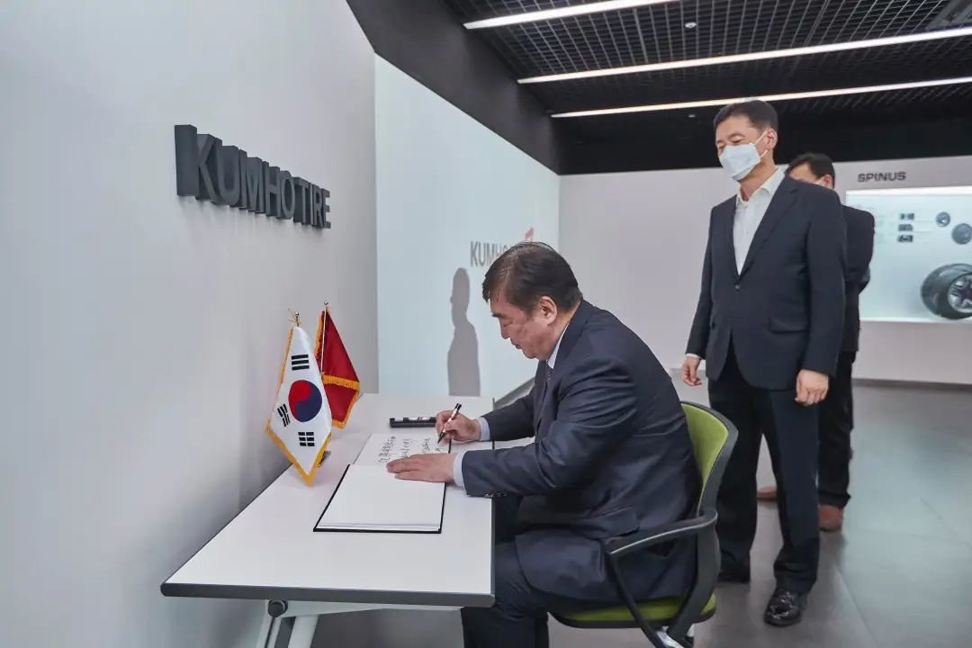 邢海明表示,经贸合作是中韩关系中的亮点。刚刚闭幕的中共二十大强调要加快构建新发展格局,着力推动高质量发展,构建以国内大循环为主体、国内国际双循环相互促进的新发展格局,这将为世界各国企业,特别是周边各国企业带来更大发展机遇。希望锦湖轮胎进一步加大研发投入,为中国乃至全世界的消费者提供更优质的产品,为中韩未来三十年经贸合作取得更加辉煌的成果作出贡献。