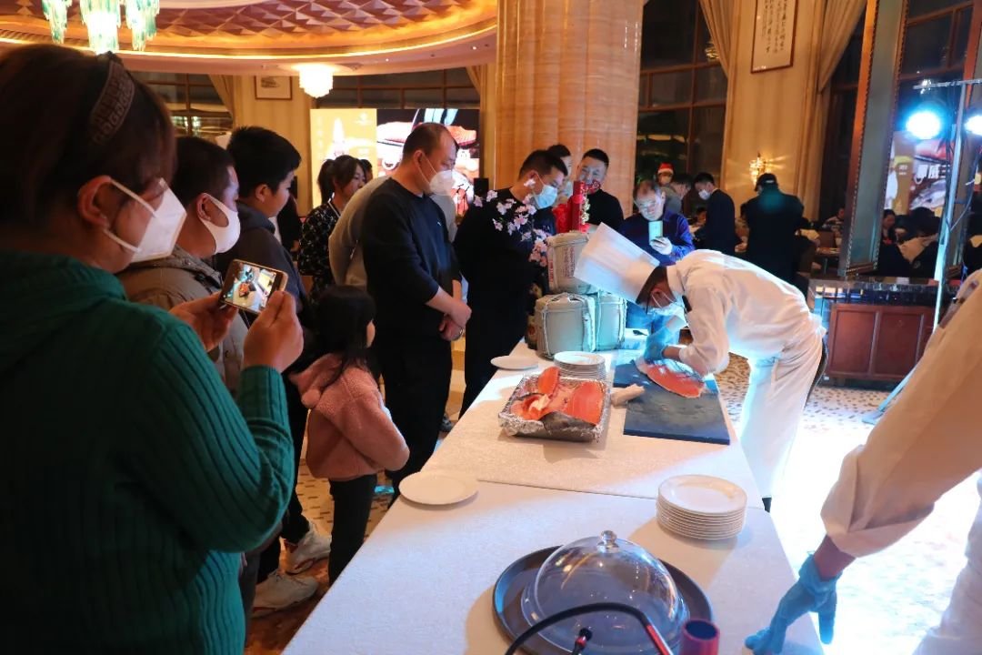 现场挪威三文鱼开鱼秀