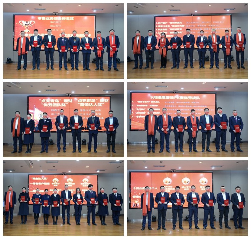 会议总结了2022年分行零售条线重点工作完成情况,对表现突出的优秀单位和个人进行现场表彰。青岛分行党委书记、行长侯传和,党委委员、副行长郑山,党委委员、临沂分行行长王光明为获奖单位和个人颁发奖状,鼓励大家再接再厉、勇攀新高!