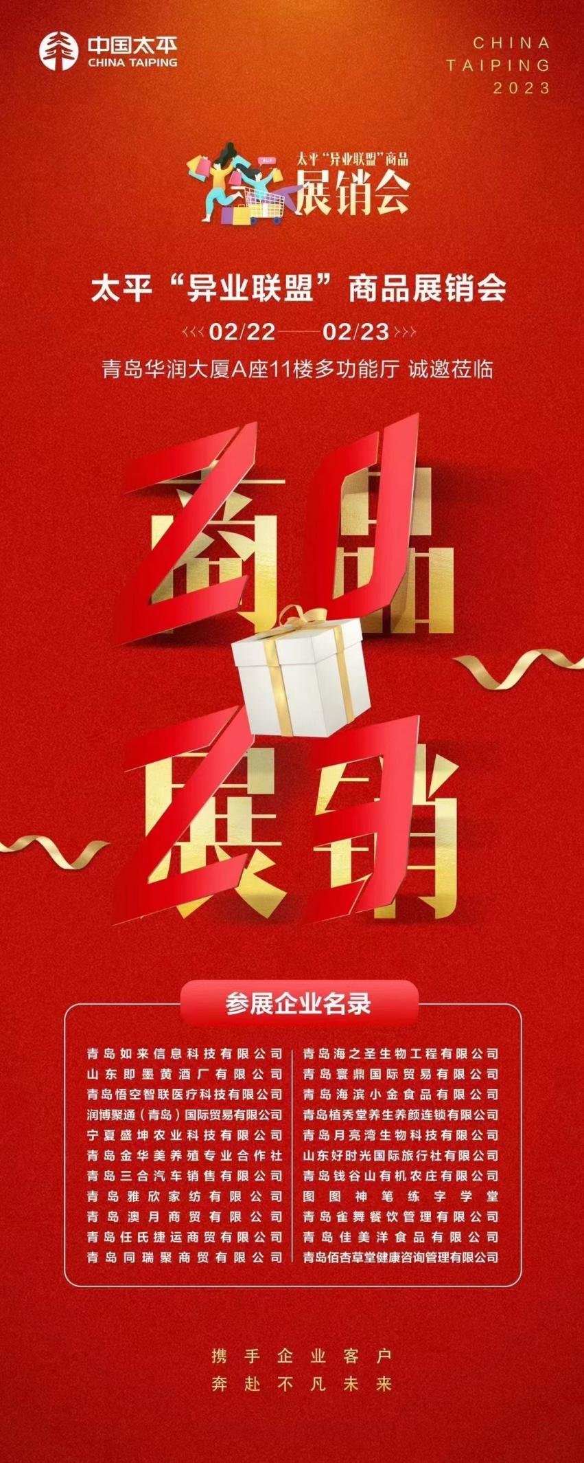 2022年,太平人寿青岛分公司与岛城众多中小企业共同开启异业联盟活动项目,连续举办多场商家展销活动,积极做好企业商品宣传,赢得客户的认可和好评。2023年,太平人寿青岛分公司将持续高质量举办异业联盟展销会,发挥太平“异业联盟”平台优势,切实做到惠及民生,助力当地企业获得良性发展。