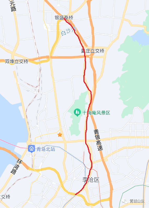 北端大体是从流亭的银盛泰立交桥开始,南端到李沧界: