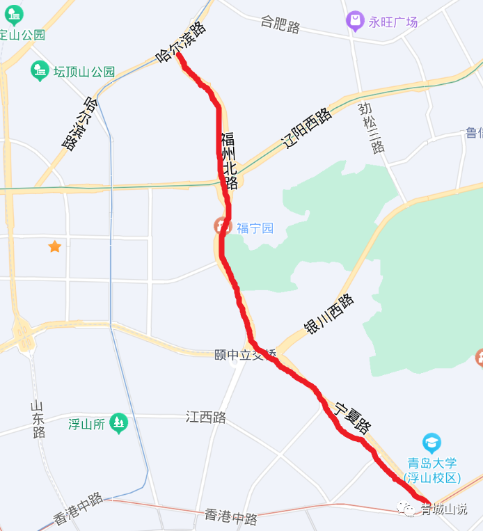 福宁隧道则是青岛市区南北方向的一条主干道,沿福州路、宁夏路方向: