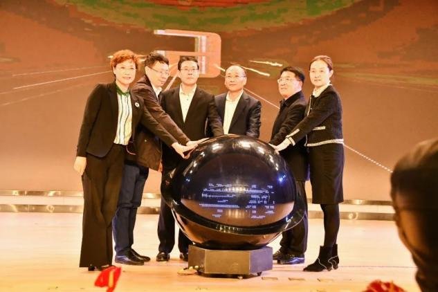在悠扬的乐曲声中,刘玮、于瑞泳、 隋世宇、张成霞、卢春林、李红梅同志一起上台,共同见证青岛明德双语学校新校区“拥抱变化,创造未来”的新篇章。