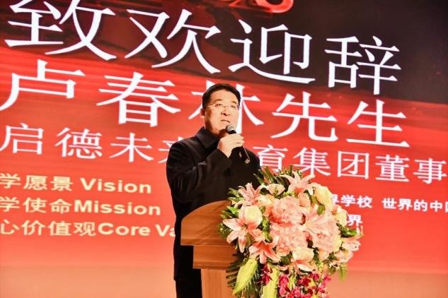 青岛启德未来教育集团董事长卢春林致欢迎辞。卢董表示明德双语定将以新校区启用为契机,办一所“扎根中国、立足本土、放眼世界、融合创新”的先进的IB学校,促进青岛的国际教育发展,让青岛也拥有可以比肩北上广深的最好的国际化教育的学校。