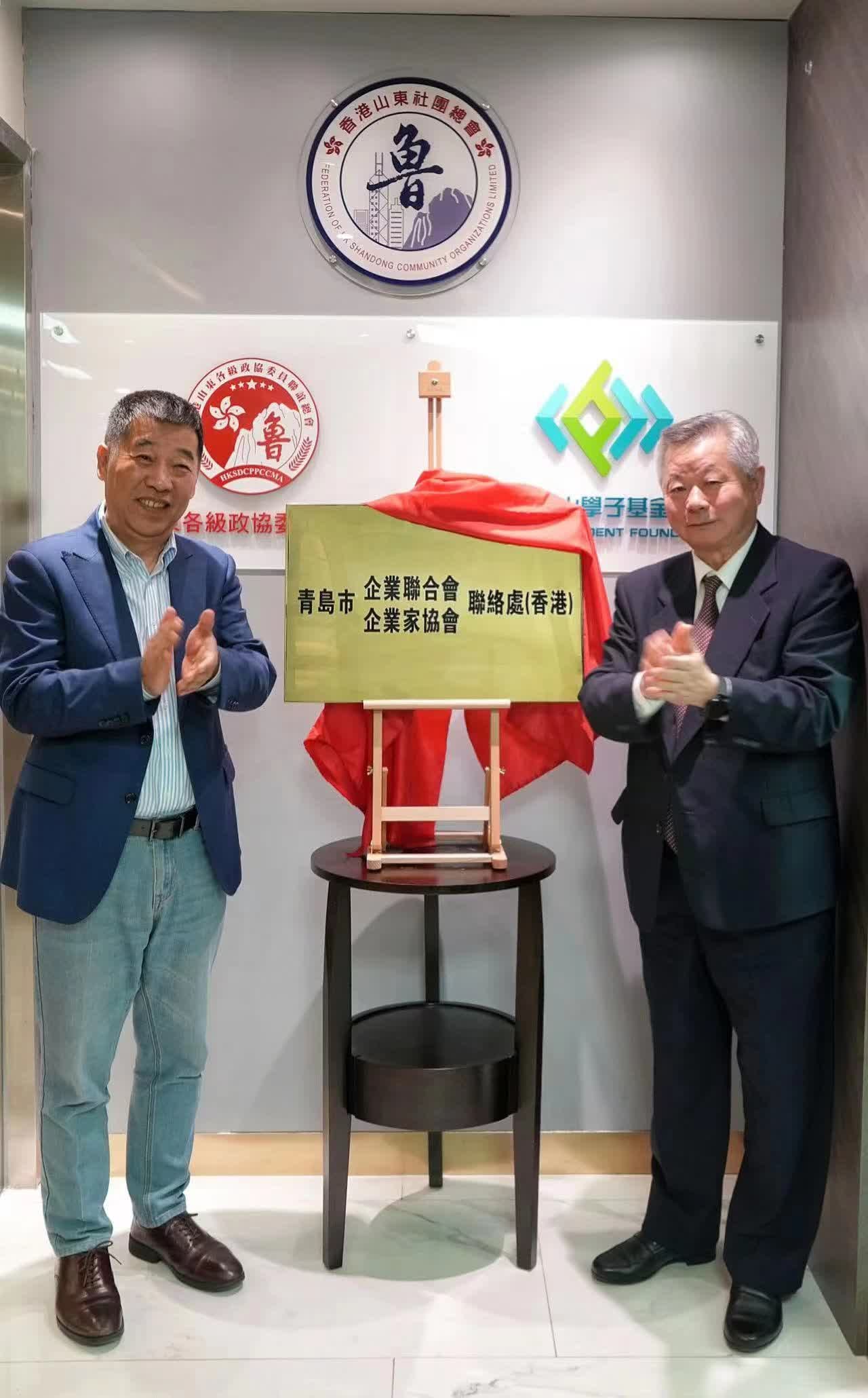 朱新胜对青岛市企业联合会一行来访表示热烈欢迎,他讲到,香港山东社团总会是在国家和山东省各级领导的关怀支持下、在香港山东乡亲积极参与下成立的爱国爱港社团组织。香港山东社团总会秉承「爱国、团结、发展、共赢」的宗旨,服务国家大局,凝心聚力,增强山东在港社团的影响力和号召力,深化鲁港两地经贸文化合作交流和全方位互动。青岛市企业联合会、青岛市企业家协会香港联络处挂牌启动之后,香港山东社团总会将发挥好现有三十余个属会、数万名会员以及20万居港鲁籍乡亲及各界友好的作用,与青岛企业广泛开展联谊交流、投资考察、论坛研讨、展览展会及文化教育等互动活动,为青岛企业在香港开展经贸活动做好服务,为香港企业到青岛投资发挥好桥梁和纽带作用。