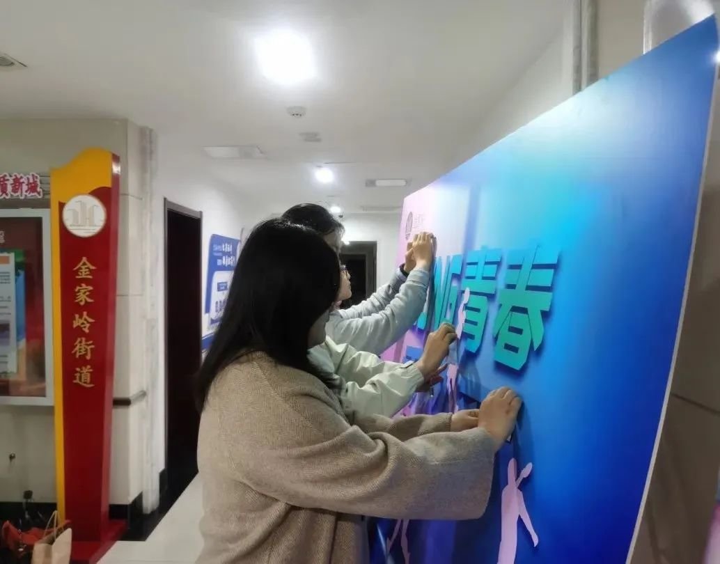 5月4日,金家岭街道团工委组织开展“young青春 秀风采”五四青年节主题留言板展示活动。活动在街道办事处一楼设置留言板,积极发动街道机关青年围绕党的二十大,在展板上写下自己的体悟感受或共勉寄语,激励和引领广大青年坚定跟党走、建功新时代,推进各项工作再上新台阶。