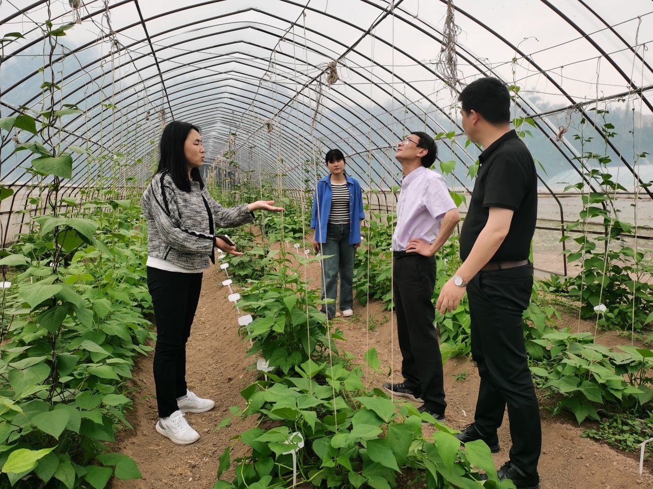 在食用豆种植试验大棚里,听取了国家食用豆产业技术体系青岛综合试验站构建的115份鲜食豌豆核心育种亲本库、272个鲜食甜豌豆为主的高代品系表现情况,了解了芸豆田间管理技术,设施小型辅助设备、联合鉴定试验全苗技术。