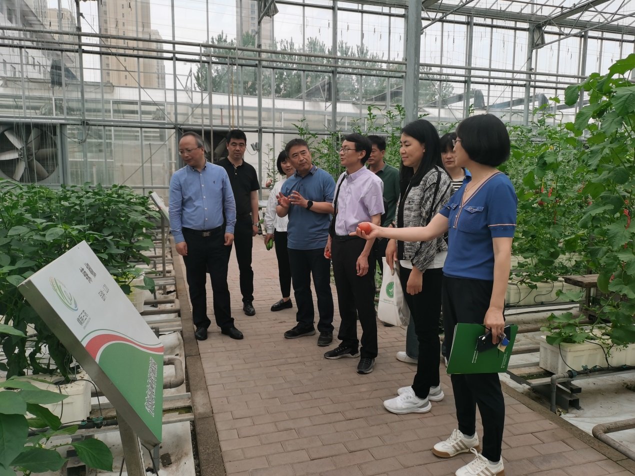 在蔬菜无土栽培展示温室里,听取了华南型黄瓜、小果型西瓜、贝贝南瓜、粉果番茄、樱桃番茄等优异蔬菜品种的无土栽培、水肥一体化技术以及病虫害综合防控技术情况介绍,了解了国家大宗蔬菜产业技术体系青岛综合试验站立足青岛市蔬菜产业发展需求,在大白菜、华南型水果黄瓜、黄瓜砧木等品种配套技术示范推广方面开展的工作。