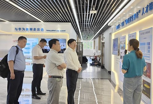 在华为技术有限公司,调研组重点参观了华为教育行业展区并就深化数字化培养、共建产业学院和实训基地以及未来新校区智慧化校园建设等事宜进行了具体交流,深度感受了华为先进的企业文化。目前,青岛职业技术学院作为牵头单位,联合华为等头部企业共同获批的计算机类国家级职业教育“双师型”教师培训基地相关工作正在有序展开。
