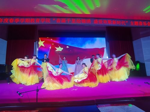 此次音乐会共分为上下两个篇章。音乐会在《盛世国乐》的鼓、筝齐奏声中拉开序幕,以西洋乐与民乐合奏、钢琴四手联弹、钢琴六手联弹、男女小合唱、混声大合唱、独唱、器乐独奏、服装秀等多种表演形式,为学校师生奉献了一场音乐视觉盛宴。节目《洪湖岸边是我家》《爱永在》《有我》穿越时空、跨越山河,饱含对祖国的热爱;《春花秋月何时了》《青玉案·元夕》传唱和诵读中华优秀传统文化的深厚文化内涵;《花儿为什么这样红》《哈尔的移动城堡》《玛依拉变奏曲》《爱的致意》《always smaller》悠扬婉转、清澈嘹亮,充满了世界情怀;《青春舞曲 库斯科邮车》《风·潮盛典》波澜壮阔、青春自信,引发了深切共鸣。在教师张艺林的指挥下,音乐教育专业全体学生共唱《在灿烂的阳光下》,以新时代青年的铮铮誓言,彰显赓续奋斗的青春力量。音乐会最后,一首男女生四重唱《再一次出发》在对祖国的赞美和新时代的讴歌中激发了师生们的凝聚力、向心力和奋斗力。整场音乐会气氛昂扬向上,现场高潮迭起掌声不断。