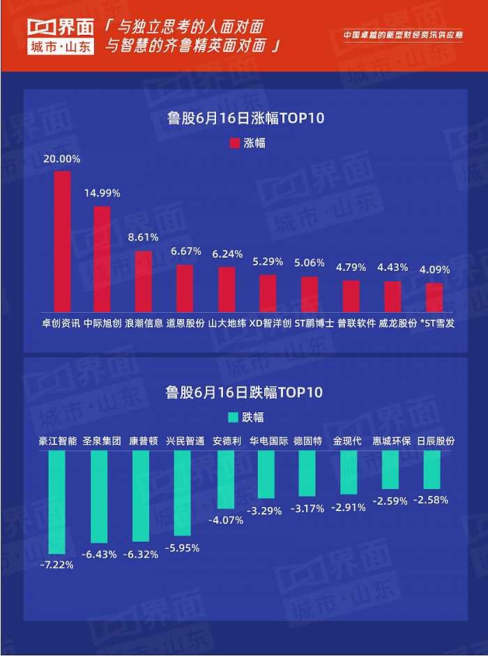原标题:鲁股观察 |6月16日:卓创资讯领涨全省,山东今日158股上涨