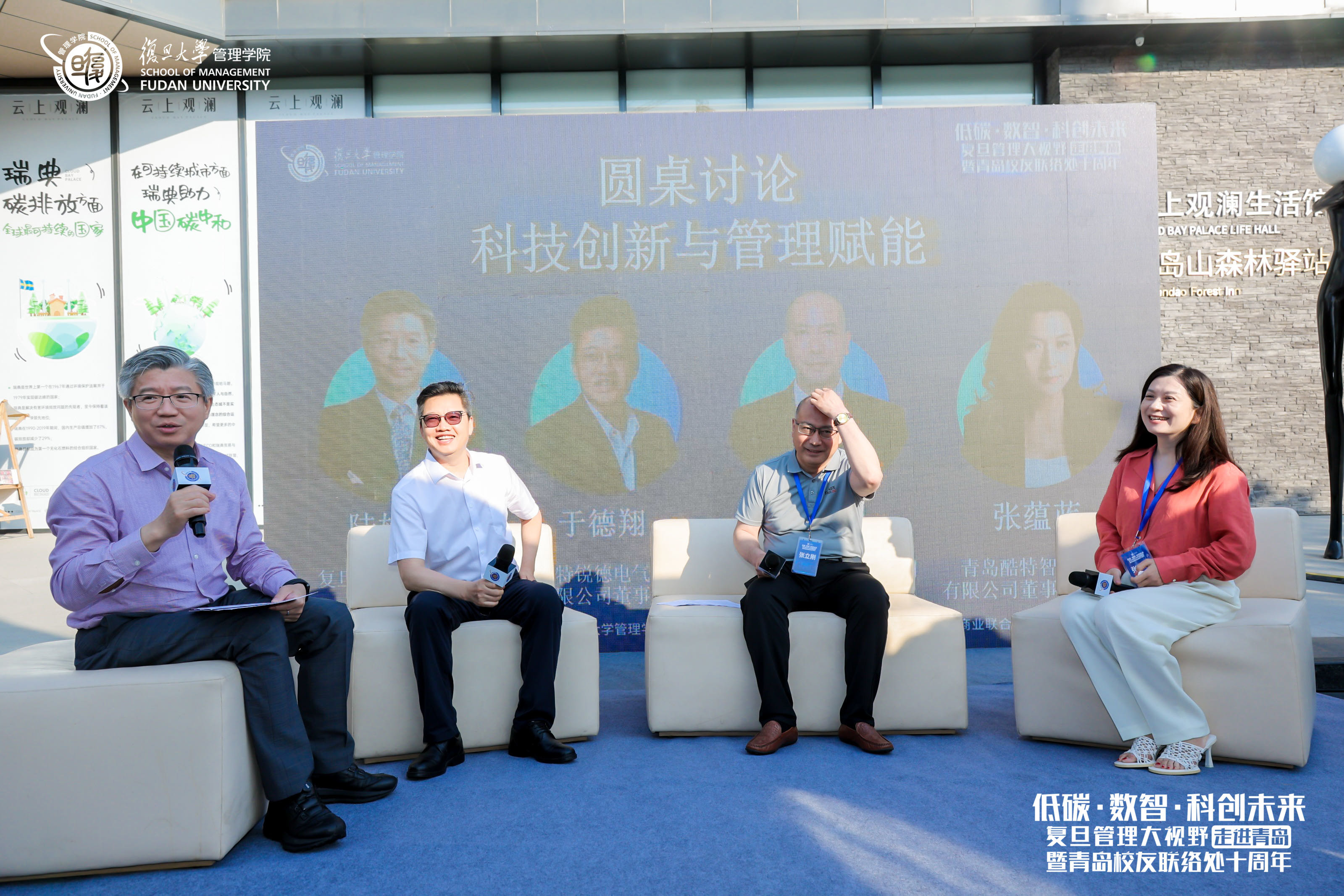 在以“科技创新与管理赋能”为主题的圆桌讨论中,陆雄文院长亲自担任主持人,与青岛特锐德电气股份有限公司、特来电新能源股份有限公司党委书记、董事长于德翔,青岛汉缆股份有限公司党委书记、董事长张立刚,青岛酷特智能股份有限公司董事长、总裁张蕴蓝等三位嘉宾展开对话,探讨如何用科创与管理赋能企业、助力地方经济发展。