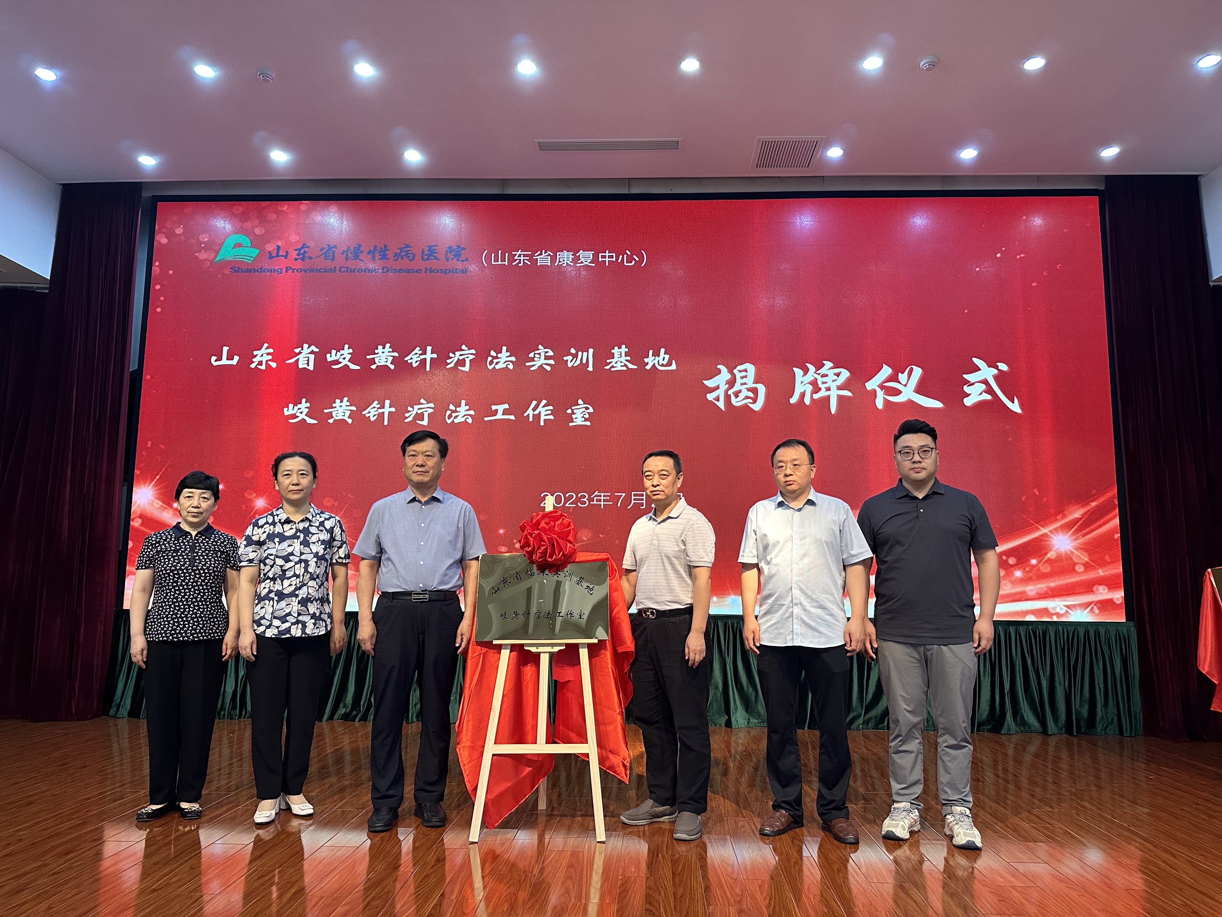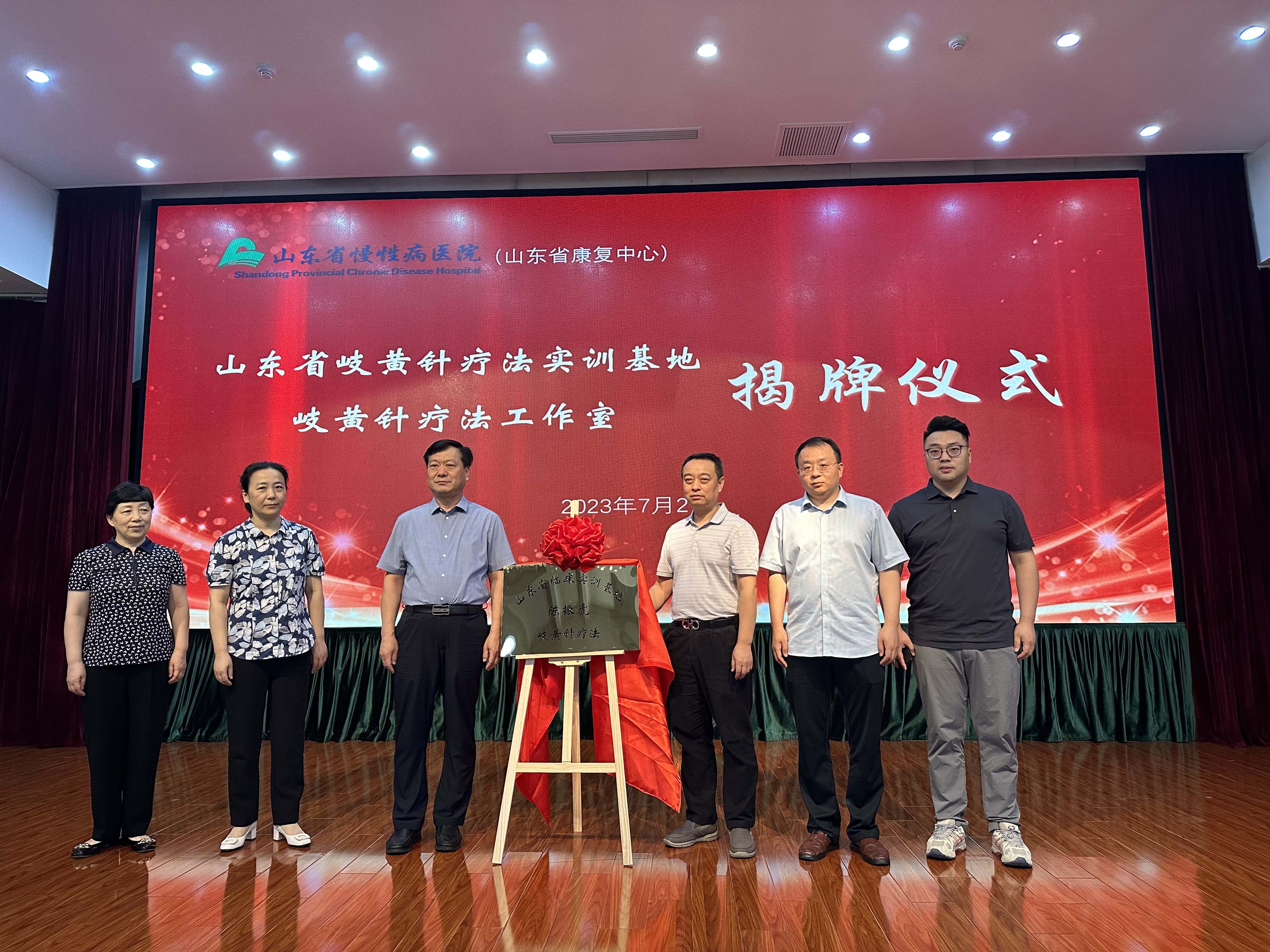 为进一步弘扬中医药优秀传统文化,传承中医药学术思想,助力医院转型发展,培育中医骨干人才。2023年7月2日上午,广州中医药大学第一附属医院针推康复中心主任、岐黄针疗法创始人陈振虎教授与山东省慢性病医院(山东省康复中心)王学宏副书记等领导共同为“山东省岐黄针实训基地”和“岐黄针疗法工作室”揭牌,标志着山东省慢性病医院(山东省康复中心)中医药传承工作、中医诊疗技术再上新台阶。