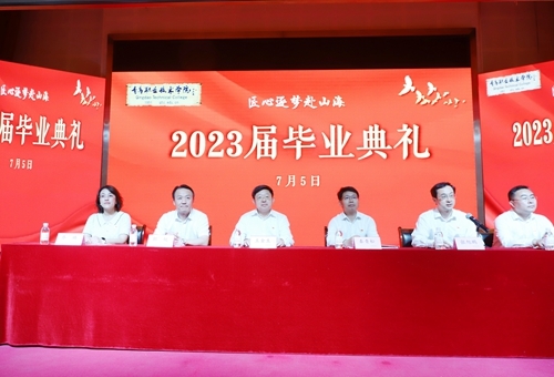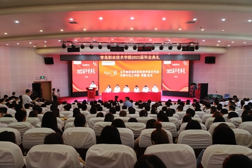 七月盛夏,骊歌奏响。7月5日上午,青岛职业技术学院隆重举行2023届毕业典礼。中共二十大代表、全国劳动模范、中车集团首席技能专家、校友代表郭锐,青岛职业技术学院党委书记王金生,党委副书记、院长秦青松,副院长张旭鹏、乔璐、刘宏出席典礼。各职能部门及二级学院负责人、教师代表、2023届毕业生代表共同参加了典礼。毕业典礼由张旭鹏主持。典礼采用线上和线下结合、主会场与分会场联动的方式进行,主会场设在校艺术厅。