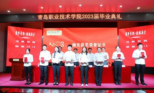 乔璐宣读了表彰决定,对省级优秀毕业生、院级优秀毕业生以及2023年“圆梦青职——技能英才”获得者予以表彰。随后,出席典礼的领导嘉宾为受表彰的学生代表颁发荣誉证书,为在德、智、体、美、劳等方面表现优秀的毕业生代表颁发毕业证书。