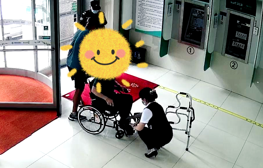业务办理完毕后,网点内勤行长和大堂经理将老人送回客户车。客户表示其老父亲也在车上等着且也要办理另一笔业务,其老父亲行走能力更糟糕。内勤行长二话不说,马上推出网点备用轮椅,细心照顾老人安全坐稳轮椅后,轻松将老人推到高柜顺利办理了业务。