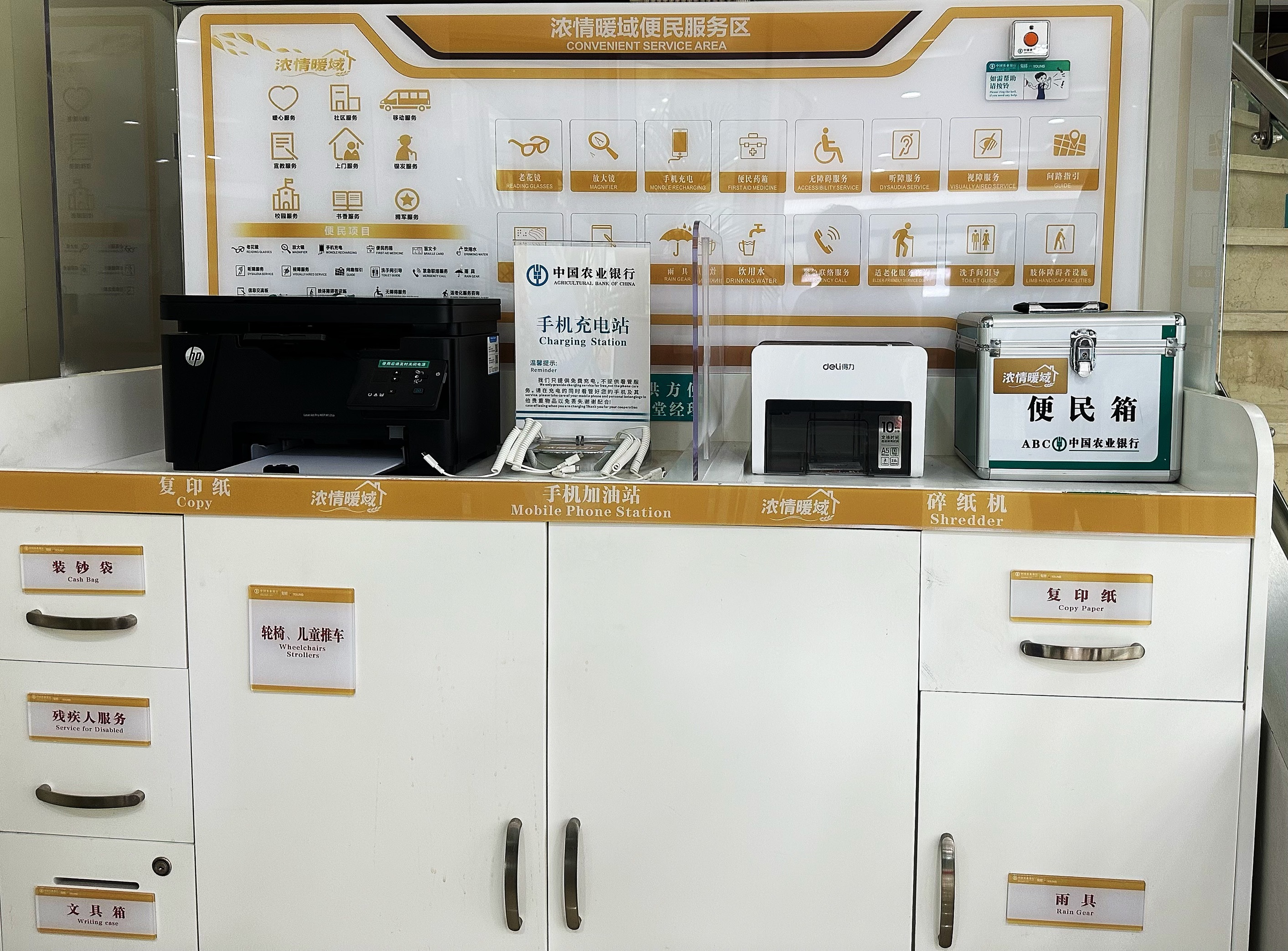 农业银行的网点不仅要做好金融本职工作,更要肩负起行业社会责任,将爱老尊老敬老作为服务的第一要义,在营业网点设置老年人通道、配备老年人服务设施等,发自真心为客户着想,全面提升网点体验,做有温度的银行!