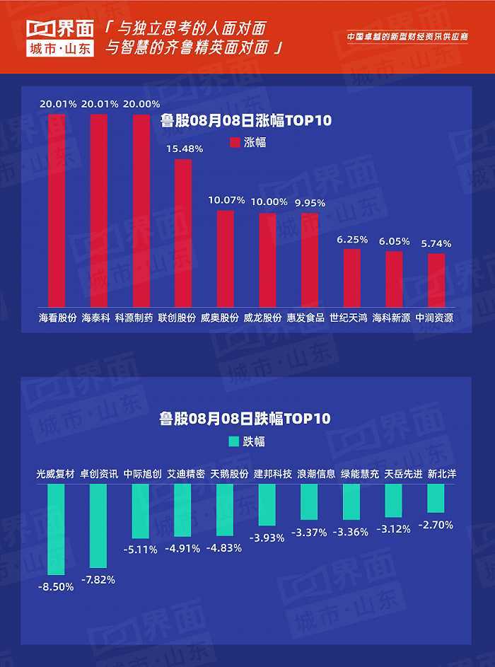 济南市涨幅榜首:海看股份(301262),涨幅20.01%,股价32.8元,总市值150.3亿元;