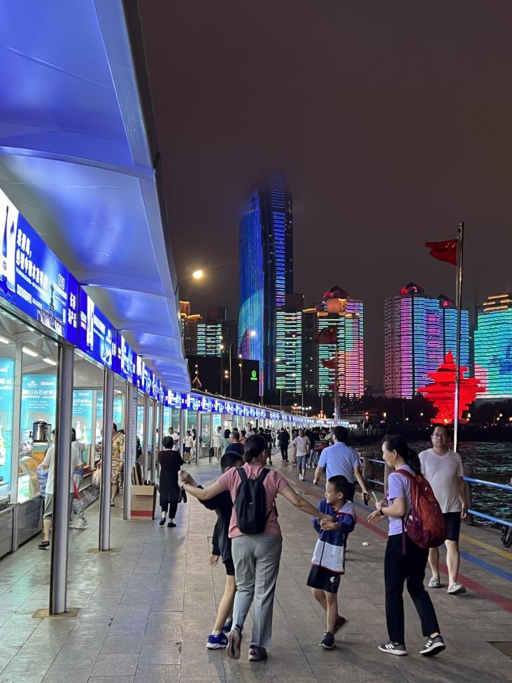 “我们为海上固定码头加装钢塑玻璃,保证了通透性的同时也让市民游客可以从步行道上就看到琳琅满目特色产品,”码头相关负责人介绍,“在更换了拉模架遮阳蓬之后,原有高度有所下降,且在原摊位不变的基础上前探80厘米,为游客在炎炎夏日遮挡出一片阴凉。”