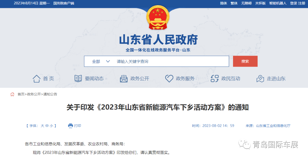作为30场新能源汽车下乡活动之一,2023第二十二届青岛秋季国际车展被重点提及。