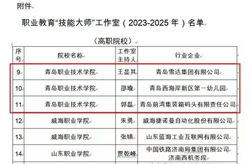 近日,山东省教育厅公布了职业教育“技能大师”工作室(2023-2025年)建设项目评审结果,青岛职业技术学院纺织服装专业“技能大师”工作室、学前教育专业“技能大师”工作室及现代物流管理专业“技能大师”工作室喜获立项省级职业教育“技能大师”工作室。这是青岛职业技术学院师资队伍建设的新突破,是青岛职业技术学院“双高”建设的重要成果。