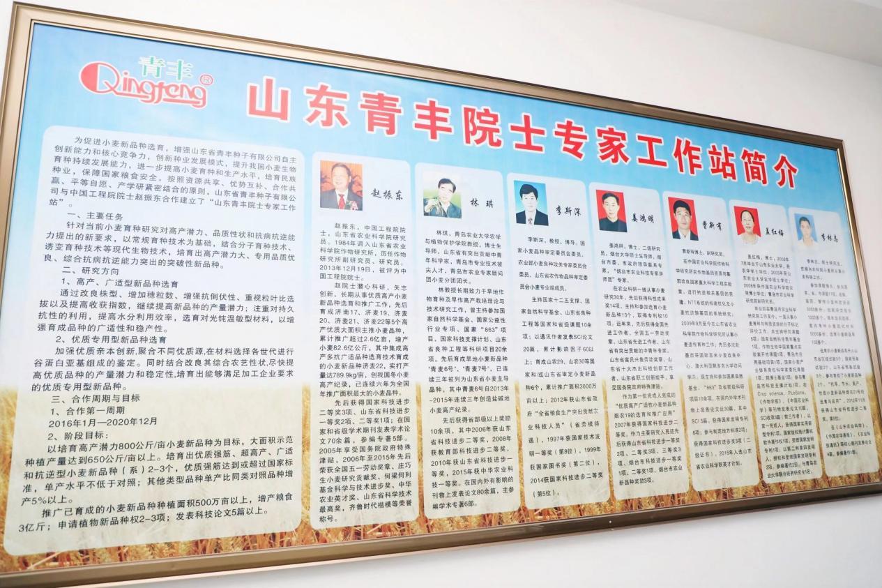 种子是农业的“芯片”,好种才能出好粮。在青丰种子有限公司,记者们实地观摩了良田、良种、良机、良法、良制“五良”融合的绿色增粮“青岛场景”,记录绿色增粮“青岛方案”。作为一家集农作物育种研究、良种繁育、生产加工、销售服务于一体的种子企业。青丰种子有限公司建有小麦繁育基地3万余亩,年生产农作物良种1800万公斤。2016年公司与山东农科院合作建设了青丰院士专家工作站,建成了赵振东院士领衔的创新团队,运用多种小麦育种方式,从传统杂交育种到高科技分子育种、航天育种、深潜育种、重离子辐射育种,育成一批高产、优质、广适的小麦新品种10个、花生新品种6个。