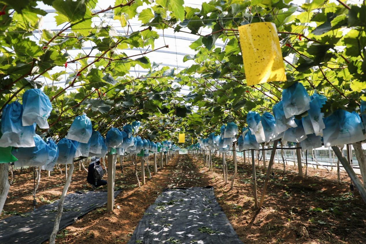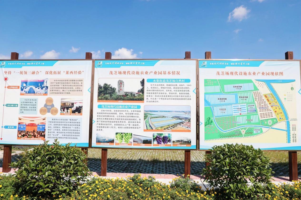 在一二三产业融合创新的莱西市茂芝场现代设施农业产业园,记者们了解到该产业园占地1500亩,总投资5000万元,主要种植藤稔葡萄和阳光玫瑰葡萄。产业园的连体式避雨大棚是目前北方地区最先进的葡萄栽培模式,获得国家级避雨栽培实用新型专利。值得一提的是,在今年园区葡萄还入选了全国名特优新农产品名录。