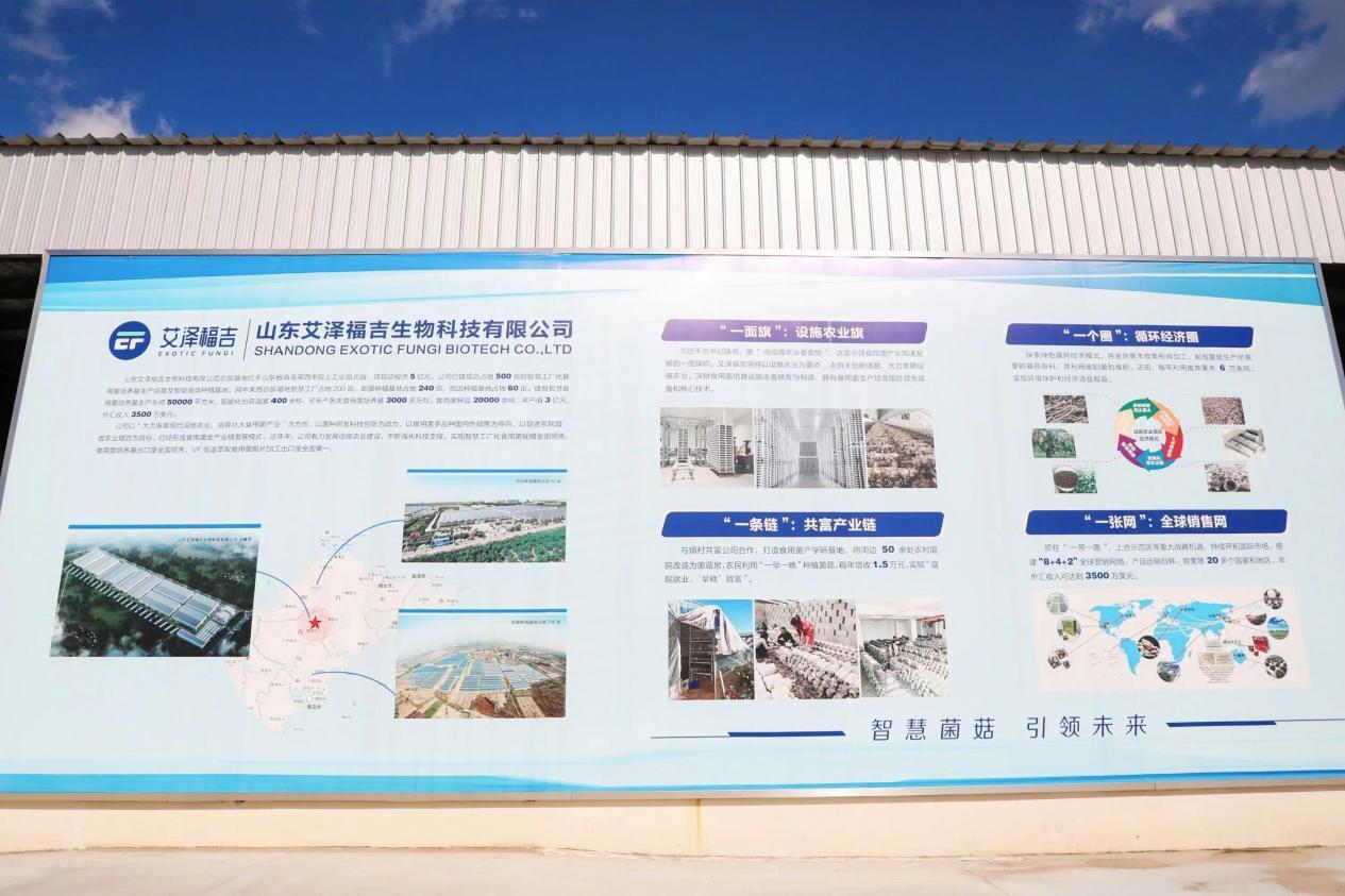 作为2023年青岛市级数字农业示范园的山东艾泽福吉生物科技有限公司,也是本次乡村振兴媒体行探访的项目之一。艾泽福吉生物科技在莱西总部基地智慧工厂占地200亩,依托自主研发的食用菌生产技术和设施农业装备,将原本农林废弃果木经过粉碎、预湿、发酵等环节做成菌棒,可年产各类食用菌培养基3000余万包、食用菌鲜品2万余吨,远销20多个国家和地区,年产值达3亿元。