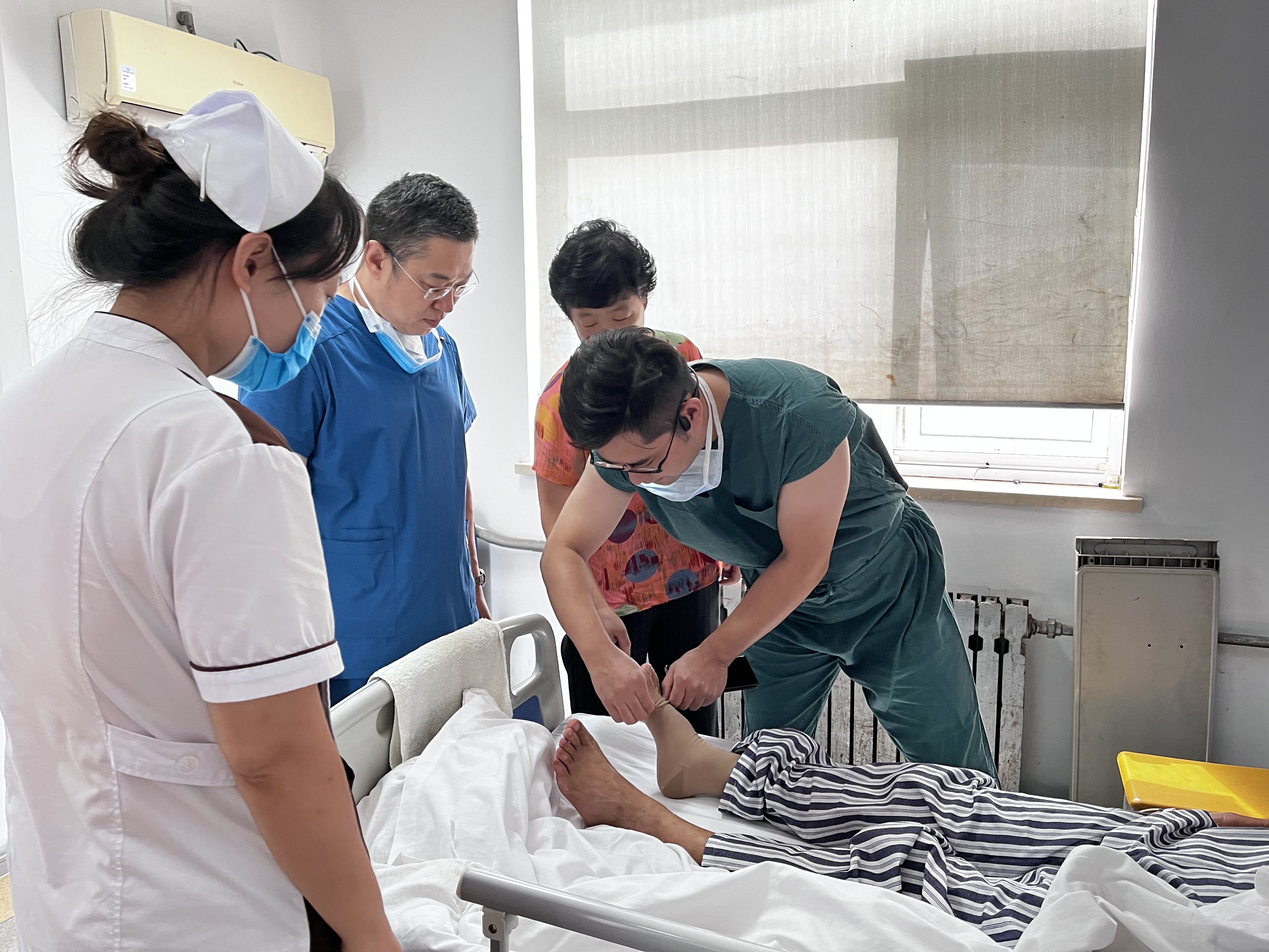 正是得益于青岛大学附属医院与青岛市市南区中西医结合医院的深度合作,设置了综合内科、综合外科、血管外科、康复医学科四个专业“共管病房”,像王老先生这样的患者就享受到了便利。血管外科共管病房由青大附院刘军军主任和中西医结合医院高岩主任“双主任制”共管,根据患者的情况,制定治疗方案,及时安排手术及后续康复。