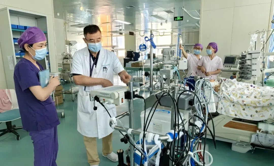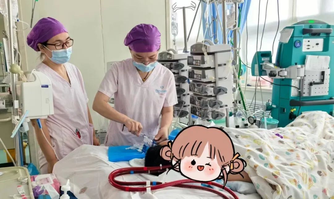 PICU 团队、 ECMO 团队立即为 亮亮 进行药物复苏、电除颤等紧急救治措施,同时迅速完成 ECMO 及 CRRT 置管 、气管插管 ......30 分钟后,机器正常运转,借助“人工心脏”和“人工肾脏”等体外生命支持, 亮亮 “ 乱跳 ” 的心脏暂时得到休息,为心肺功能恢复争取了时间。