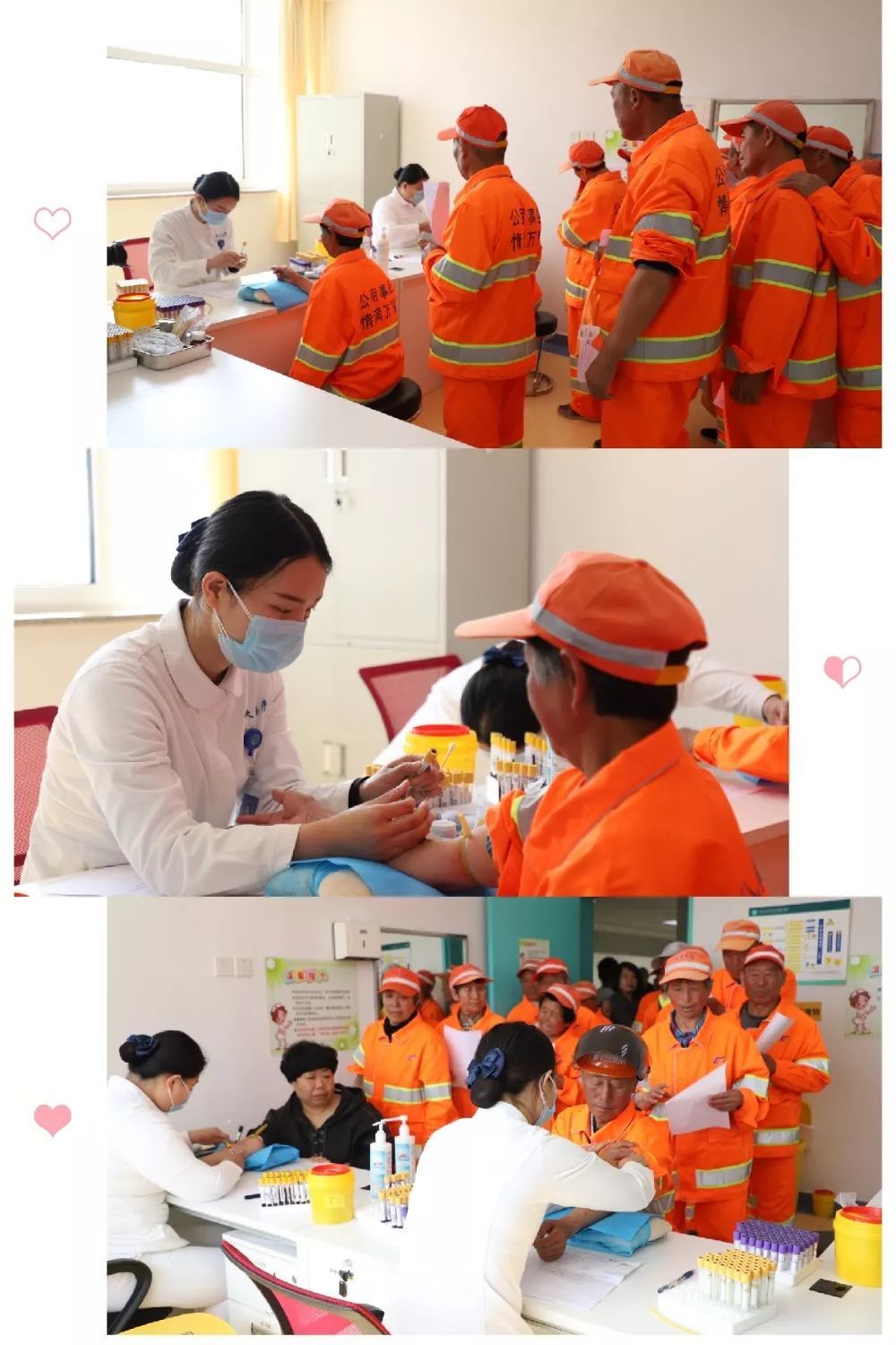 医院始终把关注健康事业,投身社会公益,担当社会责任作为医院文化建设的重要组成部分。为一线环卫工人免费体检,作为我院一项常态化、重要的服务举措,已连续开展7年,今年将继续开展。通过组织健康体检,切实帮助环卫工人了解身体状况、排查健康隐患,增强保健意识、培养健康生活方式,向环卫工人和环卫事业表达一份尊重和支持。