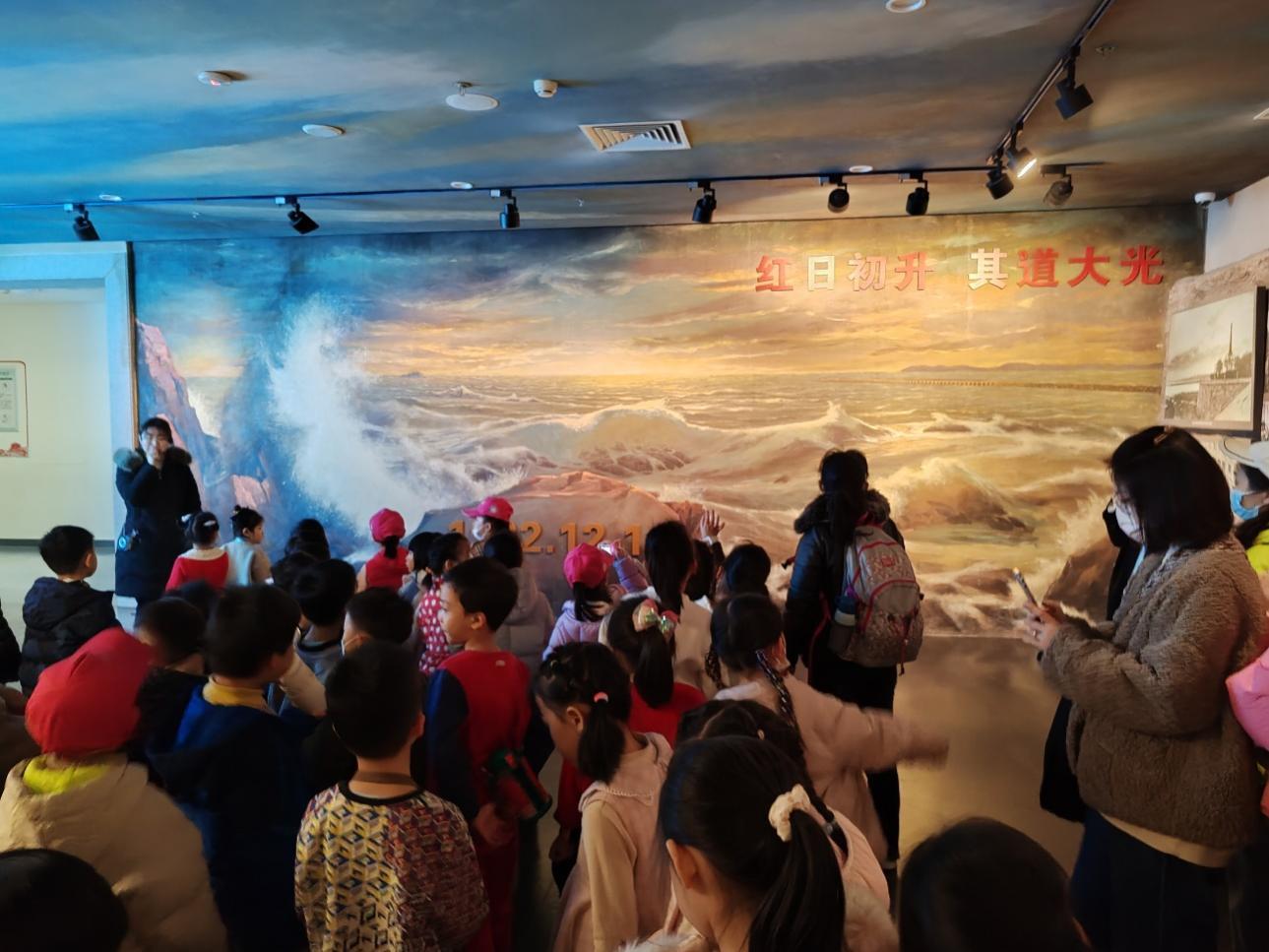 参观结束后,孩子们在展馆内共唱中华人民共和国国歌。他们用最嘹亮的声音,表达了对祖国的热爱与敬意。歌声在博物馆内回荡,与油画上的“红日初升,其道大光”八个大字交相辉映。