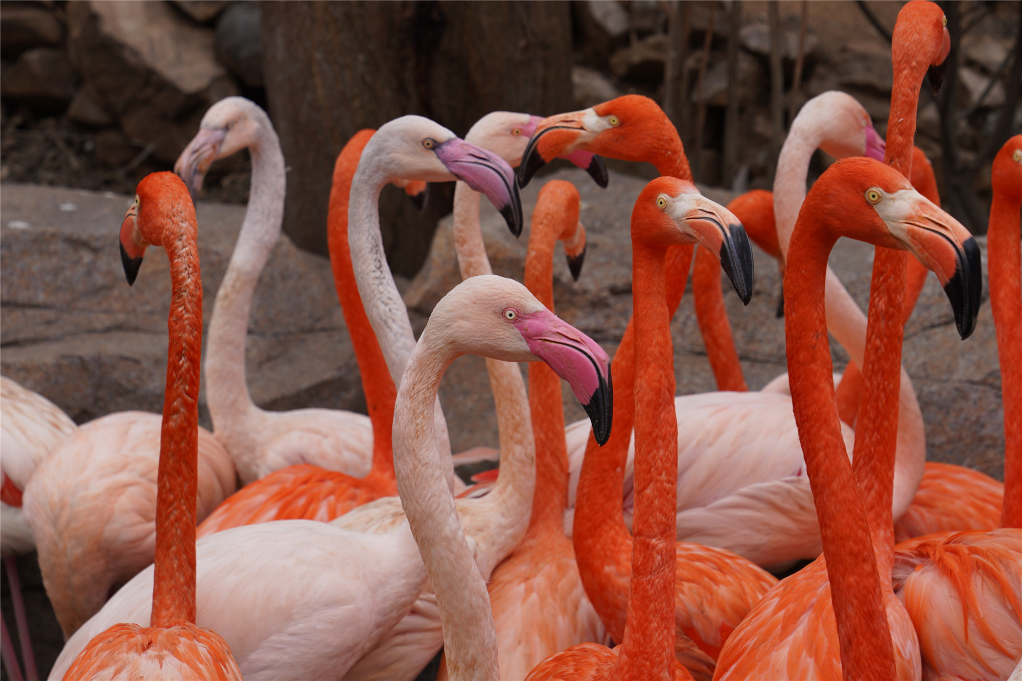 在动物世界火烈鸟馆记者看到,艳丽的火烈鸟也出来与市民游客见面了。新的展区缩短了游客与火烈鸟的直线距离,让游客更近距离欣赏火烈鸟的美丽。