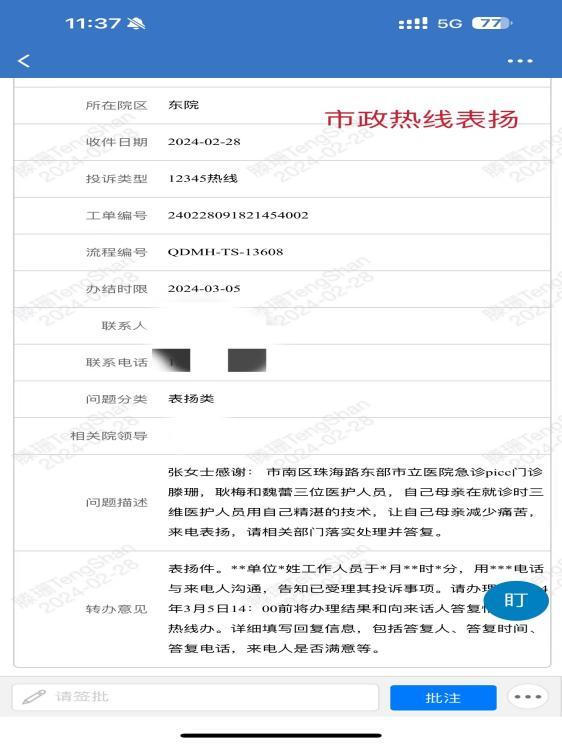 东院急诊PICC护理团队具备国家级、省级静脉治疗专科护士资质、植入式给药装置操作资质、心腔内定位隧道式技术资质,可满足临床多样化的输液需求。开展了青岛市首例3CG尖端定位系统+隧道式PICC置管术,目前疑难复杂的PICC置管术居青岛市领先水平,为抢救患者的生命提供强有力的保障。同时开展“互联网+护理”服务,将优质护理技术从院内延伸至院外,赢得了越来越多的患者及家属的信任。